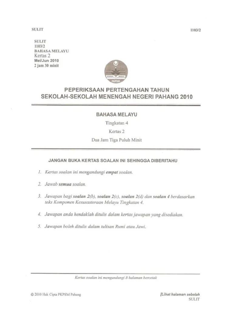 Format kertas bahasa melayu pada dasarnya adalah sama dan pada kebiasaannya, guru akan menggunakan peperiksaan pertengahan tahun bagi melatih .